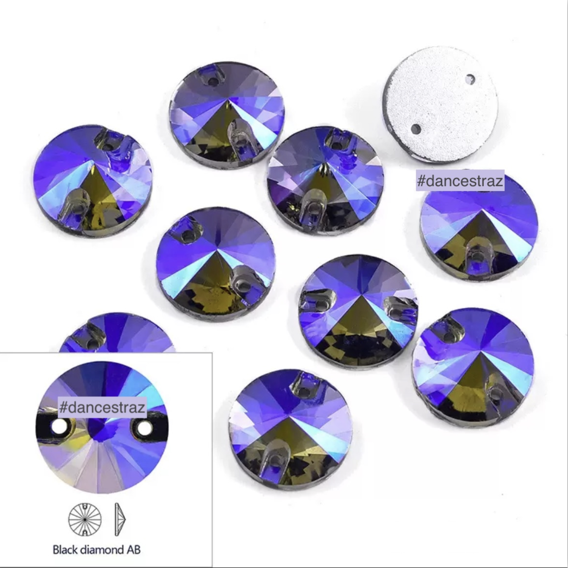 Стразы пришивные, Rivoli, Black Diamond AB, A3-P51, 16mm, (32 ea/pkg), (F2)